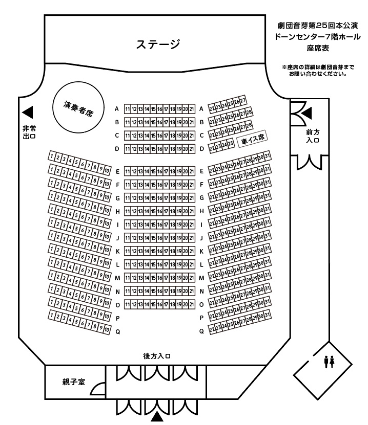 ★できる限りご希望に沿ったお座席をご用意させて頂きます。(既にお席が埋まっている場合ご希望に沿えない場合がございます。また劇団音芽以外でのプレイガイドでご購入の場合座席指定場所に限りがございます。ご了承下さい。)